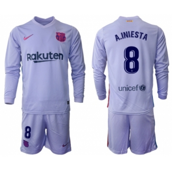>Men 2021-2022 Club Barcelona Second away purple Long Sleeve 8 Soccer Jersey