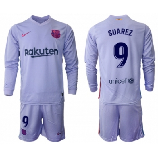 >Men 2021-2022 Club Barcelona Second away purple Long Sleeve 9 Soccer Jerseys