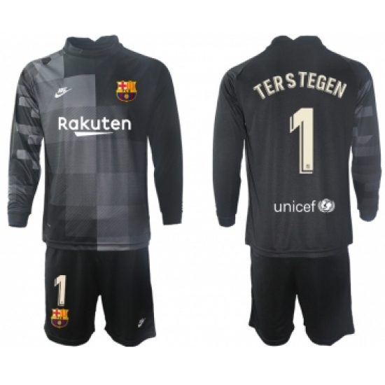 Men 2021-2022 Club Barcelona black goalkeeper Long Sleeve 1 Soccer Jersey