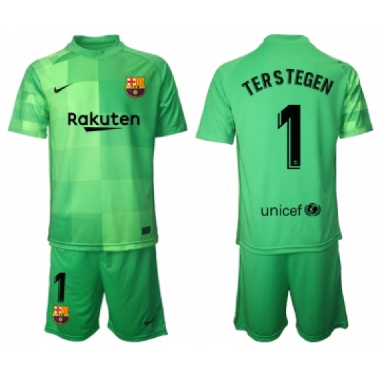 Men 2021-2022 Club Barcelona green goalkeeper 1 Soccer Jersey