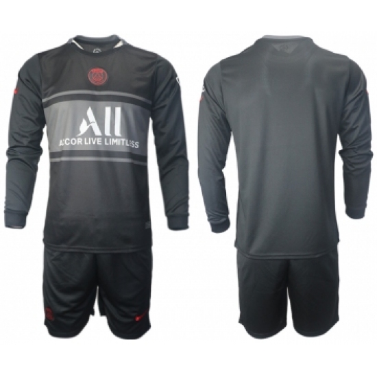 >Men 2021-2022 Club Paris St German Second away black Long Sleeve blank Soccer Jersey