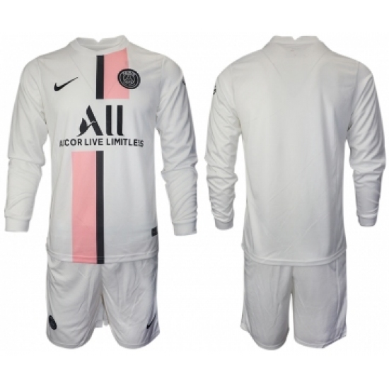 >Men 2021-2022 Club Paris St German away white Long Sleeve blank Soccer Jersey