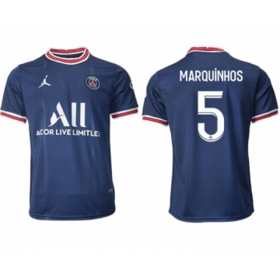 >Men 2021-2022 Club Paris St German home aaa version blue 5 Soccer Jersey