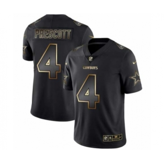 Men Dallas Cowboys #4 Dak Prescott Black Golden Edition 2019 Vapor Untouchable Limited Jersey