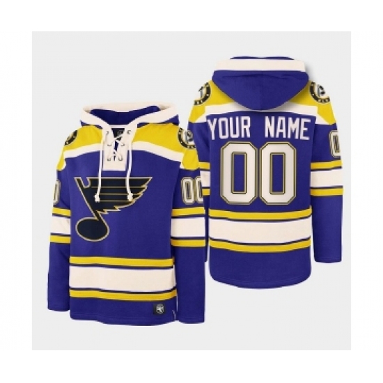 >Men St. Louis Blues Active Player Custom Blue Ageless Must-Have Lace-Up Pullover Hoodie