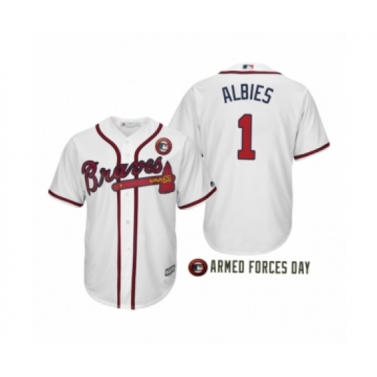 Men's 2019 Armed Forces Day Ozzie Albies #1 Atlanta Braves White Cool Base Jersey
