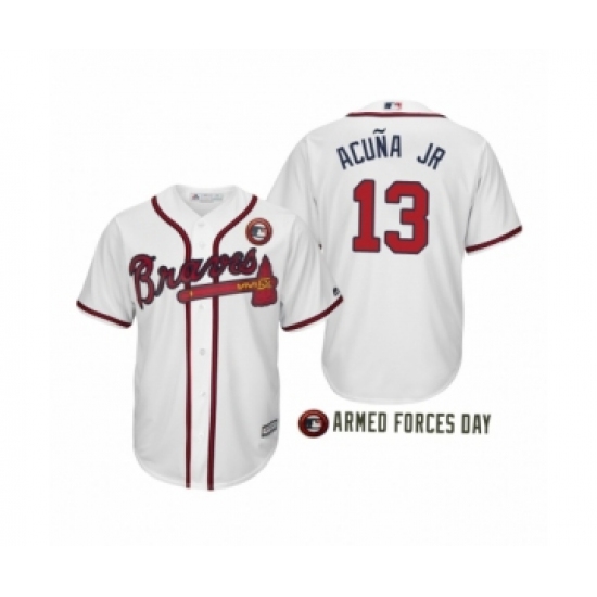 Men's 2019 Armed Forces Day Ronald Acuna Jr. #13 Atlanta Braves White Cool Base Jersey