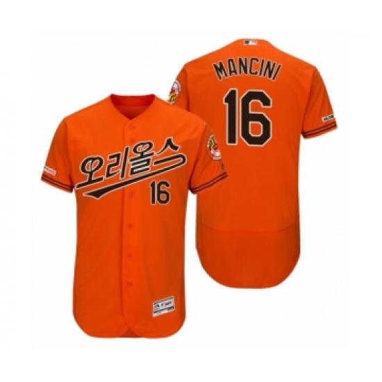 >Men's 2019 Asian Heritage Month Baltimore Orioles #16 Trey Mancini Orange Korean Flex Base Jersey