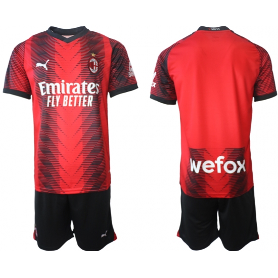 Men's AC Milan Blank 2023-24 Red Black Home Soccer Jersey