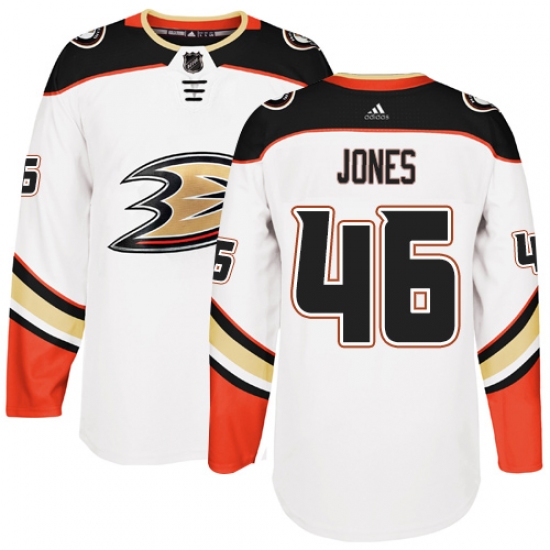 Men's Adidas Anaheim Ducks #46 Max Jones Authentic White Away NHL Jersey