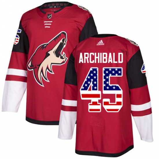 Men's Adidas Arizona Coyotes #45 Josh Archibald Authentic Red USA Flag Fashion NHL Jersey