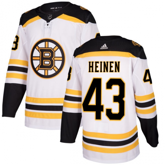 Home>NHL>Boston Bruins>Danton Heinen>Men's Adidas Boston Bruins #43 Danton Heinen Authentic White Away NHL Jersey