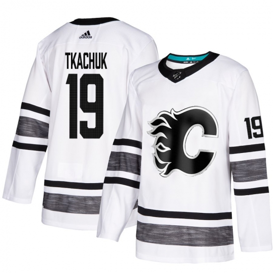 >Men's Adidas Calgary Flames #19 Matthew Tkachuk White 2019 All-Star Game Parley Authentic Stitched NHL Jersey
