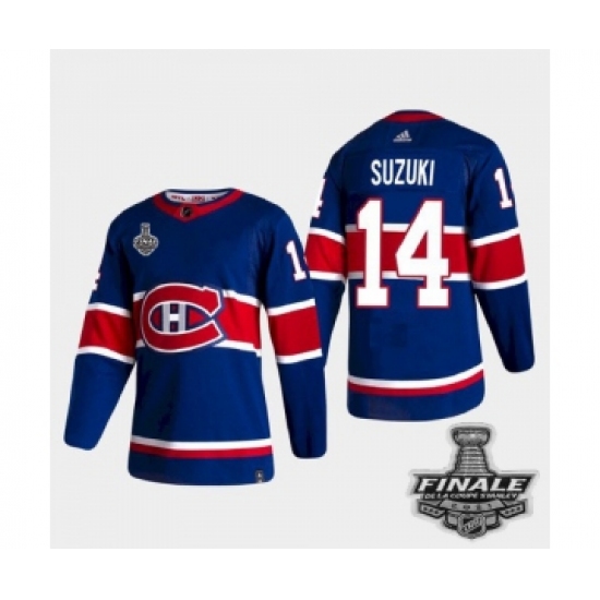 Men's Adidas Canadiens #14 Nick Suzuki Blue Road Authentic 2021 Stanley Cup Jersey