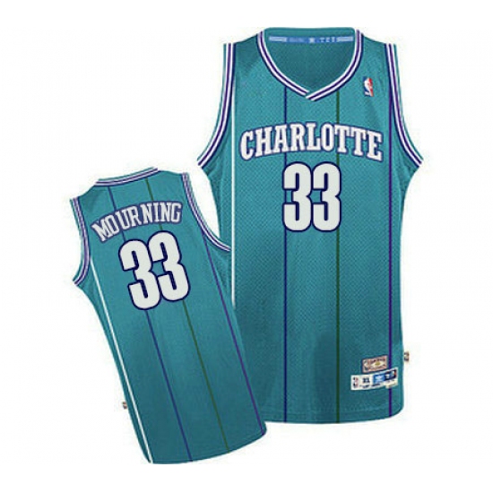 Home>NBA>Charlotte Hornets>Alonzo Mourning>Men's Adidas Charlotte Hornets #33 Alonzo Mourning Authentic Light Blue Throwback NBA Jersey
