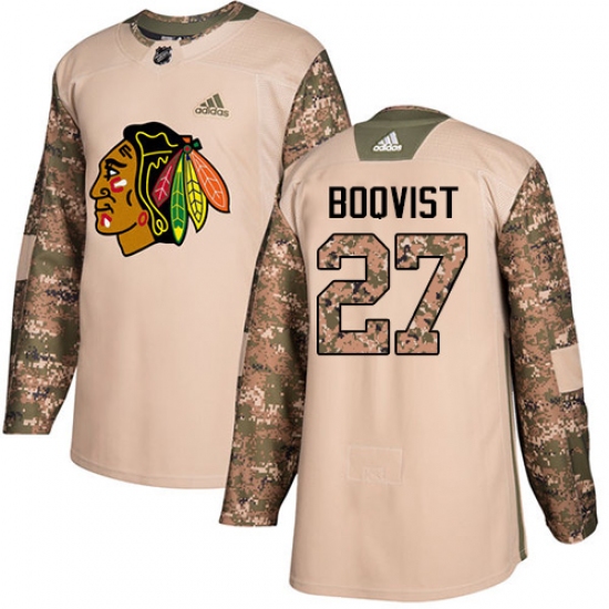 >Men's Adidas Chicago Blackhawks #27 Adam Boqvist Authentic Camo Veterans Day Practice NHL Jersey