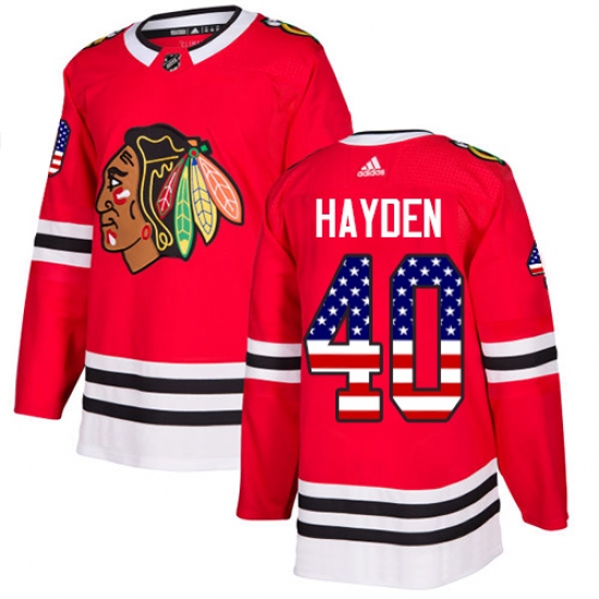 Home>NHL>Chicago Blackhawks>John Hayden>Men's Adidas Chicago Blackhawks #40 John Hayden Authentic Red USA Flag Fashion NHL Jersey