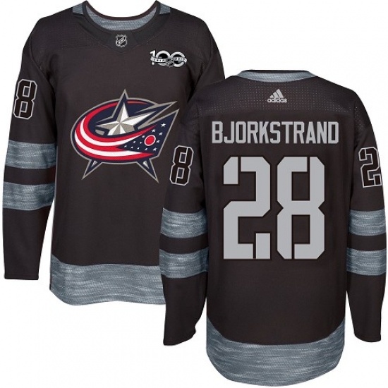 Home>NHL>Columbus Blue Jackets>Oliver Bjorkstrand>Men's Adidas Columbus Blue Jackets #28 Oliver Bjorkstrand Premier Black 1917-2017 100th Anniversary NHL Jersey