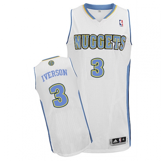 Men's Adidas Denver Nuggets #3 Allen Iverson Authentic White Home NBA Jersey