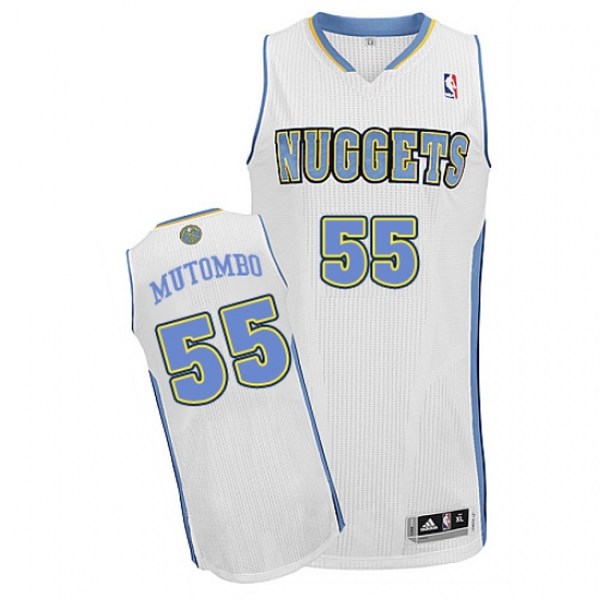 Men's Adidas Denver Nuggets #55 Dikembe Mutombo Authentic White Home NBA Jersey