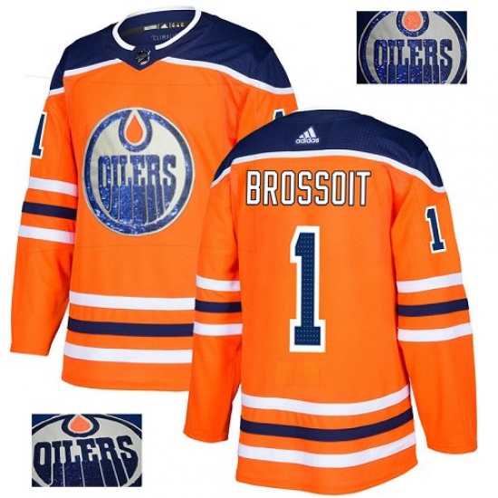 >Men's Adidas Edmonton Oilers #1 Laurent Brossoit Authentic Orange Fashion Gold NHL Jersey