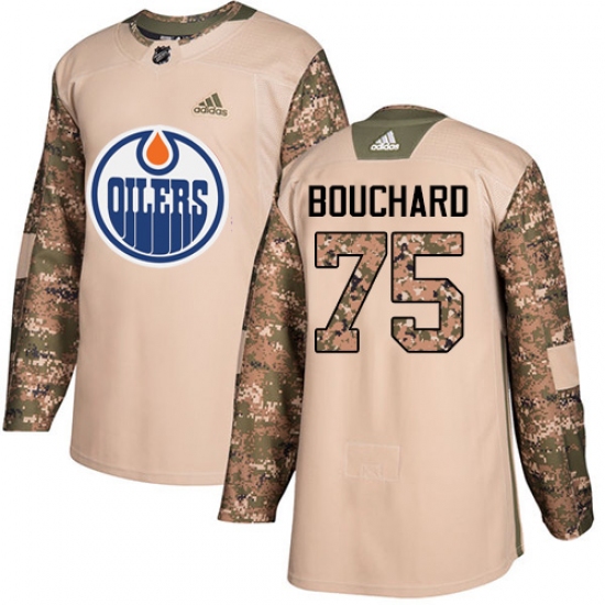 >Men's Adidas Edmonton Oilers #75 Evan Bouchard Authentic Camo Veterans Day Practice NHL Jersey