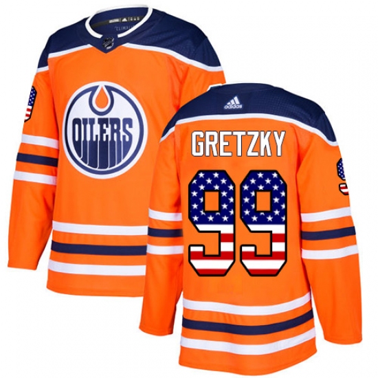 Home>NHL>Edmonton Oilers>Wayne Gretzky>Men's Adidas Edmonton Oilers #99 Wayne Gretzky Authentic Orange USA Flag Fashion NHL Jersey
