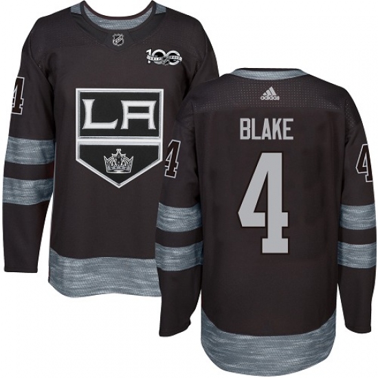 Men's Adidas Los Angeles Kings #4 Rob Blake Authentic Black 1917-2017 100th Anniversary NHL Jersey