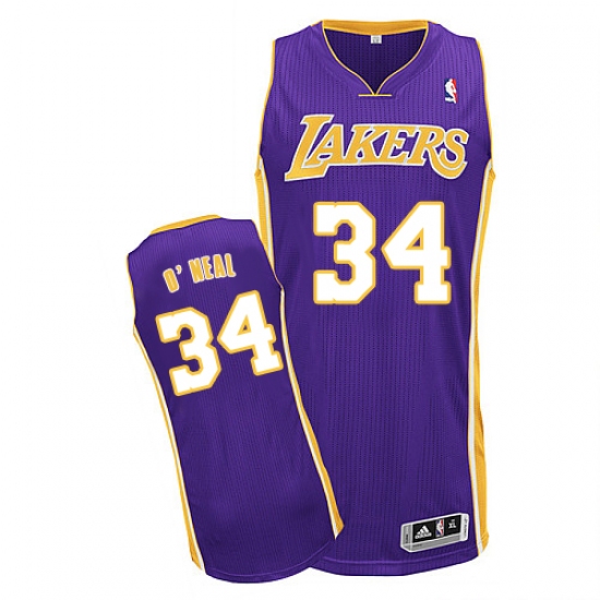 Home>NBA>Los Angeles Lakers>Shaquille O'Neal>Men's Adidas Los Angeles Lakers #34 Shaquille O'Neal Authentic Purple Road NBA Jersey