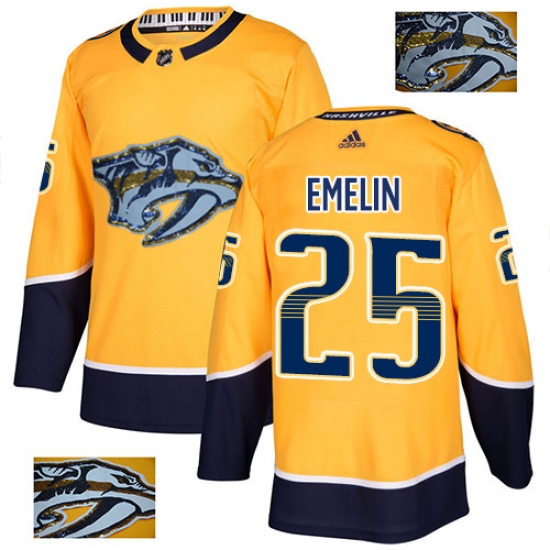 >Men's Adidas Nashville Predators #25 Alexei Emelin Authentic Gold Fashion Gold NHL Jersey