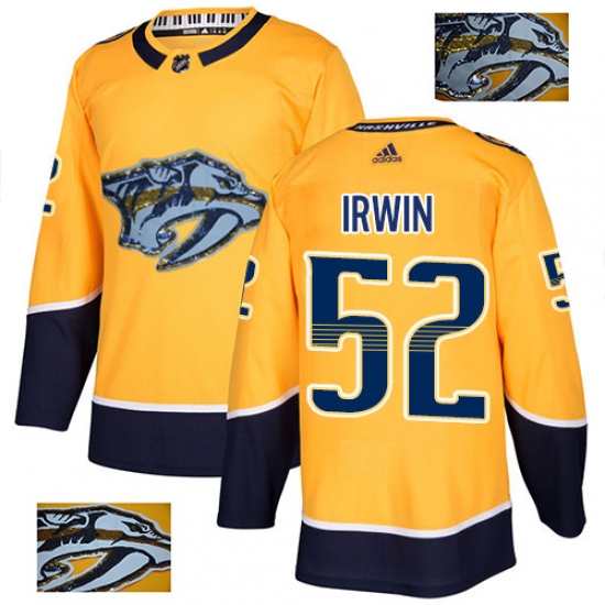>Men's Adidas Nashville Predators #52 Matt Irwin Authentic Gold Fashion Gold NHL Jersey