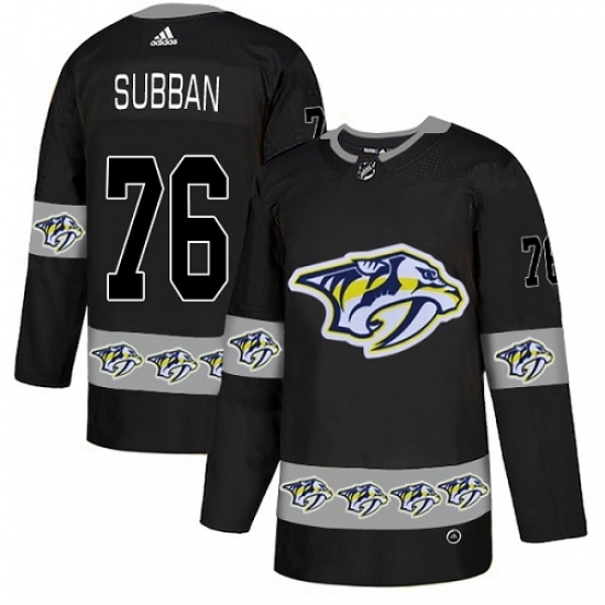>Men's Adidas Nashville Predators #76 P.K Subban Authentic Black Team Logo Fashion NHL Jersey