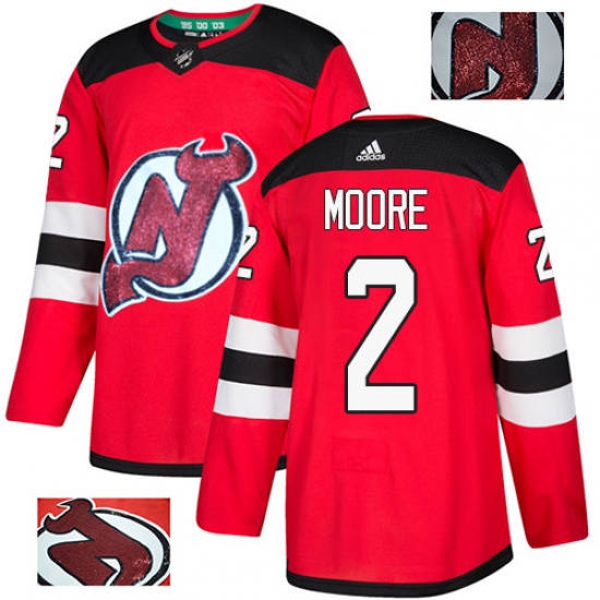Men's Adidas New Jersey Devils #2 John Moore Authentic Red Fashion Gold NHL Jersey