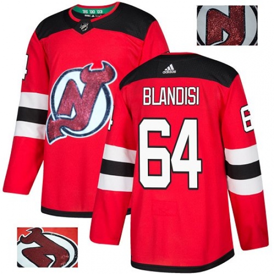 Men's Adidas New Jersey Devils #64 Joseph Blandisi Authentic Red Fashion Gold NHL Jersey