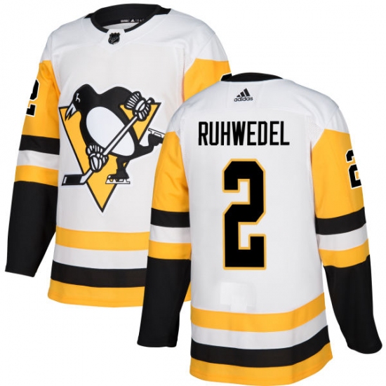 Home>NHL>Pittsburgh Penguins>Chad Ruhwedel>Men's Adidas Pittsburgh Penguins #2 Chad Ruhwedel Authentic White Away NHL Jersey