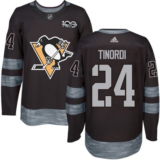 Home>NHL>Pittsburgh Penguins>Jarred Tinordi>Men's Adidas Pittsburgh Penguins #24 Jarred Tinordi Authentic Black 1917-2017 100th Anniversary NHL Jersey