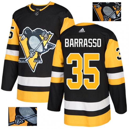 Men's Adidas Pittsburgh Penguins #35 Tom Barrasso Authentic Black 1917-2017 100th Anniversary 2017 Stanley Cup Champions NHL Jersey