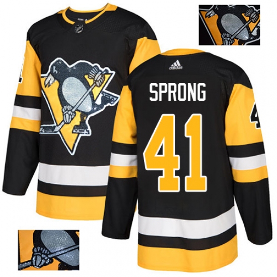 Men's Adidas Pittsburgh Penguins #41 Daniel Sprong Authentic Black Fashion Gold NHL Jersey