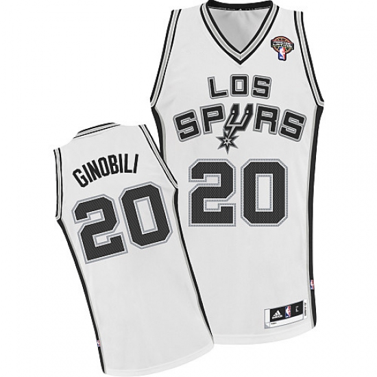 Home>NBA>San Antonio Spurs>Manu Ginobili>Men's Adidas San Antonio Spurs #20 Manu Ginobili Authentic White ABA Hardwood Classic NBA Jersey