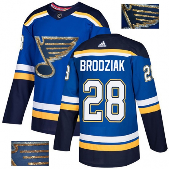 Home>NHL>St. Louis Blues>Kyle Brodziak>Men's Adidas St. Louis Blues #28 Kyle Brodziak Authentic Royal Blue Fashion Gold NHL Jersey