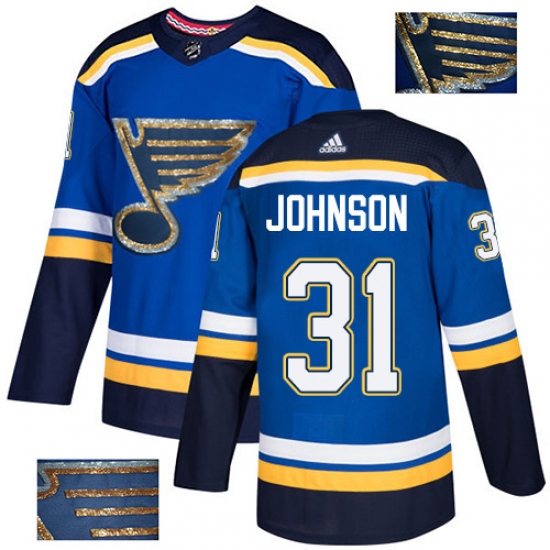 Men's Adidas St. Louis Blues #31 Chad Johnson Authentic Royal Blue Fashion Gold NHL Jersey
