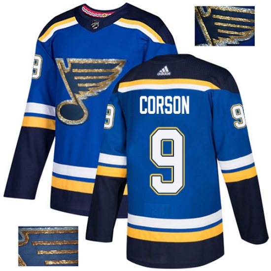 Men's Adidas St. Louis Blues #9 Shayne Corson Authentic Royal Blue Fashion Gold NHL Jersey