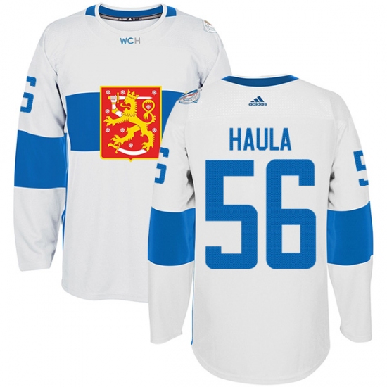 Men's Adidas Team Finland #56 Erik Haula Authentic White Home 2016 World Cup of Hockey Jersey