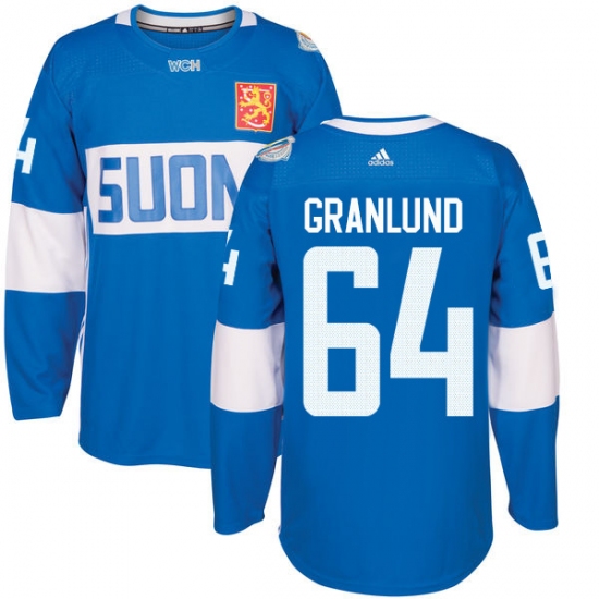 Men's Adidas Team Finland #64 Mikael Granlund Authentic Blue Away 2016 World Cup of Hockey Jersey