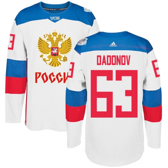 Home>NHL>Team Russia>Evgenii Dadonov>Men's Adidas Team Russia #63 Evgenii Dadonov Premier White Home 2016 World Cup of Hockey Jersey