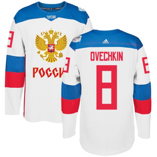 Men's Adidas Team Russia #8 Alexander Ovechkin Premier White Home 2016 World Cup of Hockey Jersey