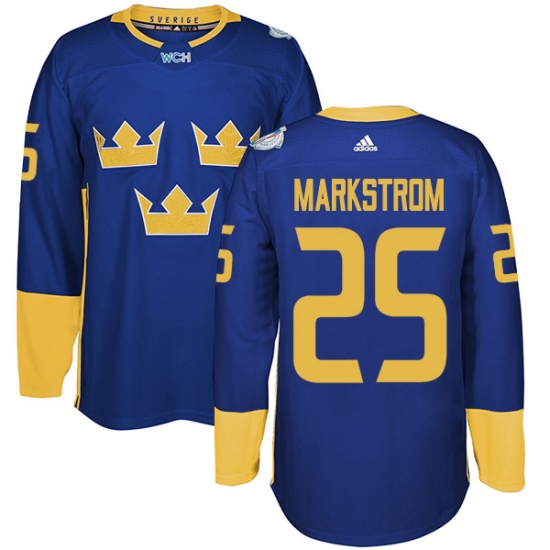 Home>NHL>Team Sweden>Jacob Markstrom>Men's Adidas Team Sweden #25 Jacob Markstrom Authentic Royal Blue Away 2016 World Cup of Hockey Jersey