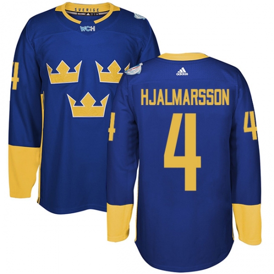 Home>NHL>Team Sweden>Niklas Hjalmarsson>Men's Adidas Team Sweden #4 Niklas Hjalmarsson Authentic Royal Blue Away 2016 World Cup of Hockey Jersey