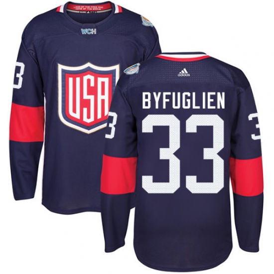 Men's Adidas Team USA #33 Dustin Byfuglien Authentic Navy Blue Away 2016 World Cup Ice Hockey Jersey