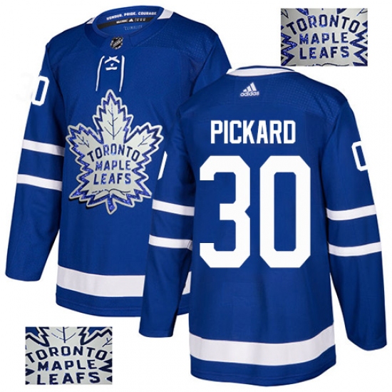 >Men's Adidas Toronto Maple Leafs #30 Calvin Pickard Authentic Royal Blue Fashion Gold NHL Jersey